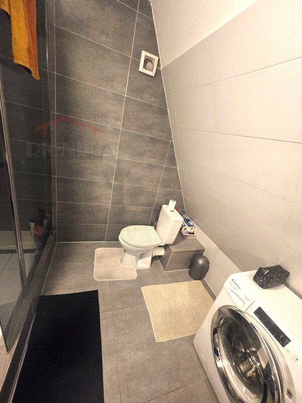 V přízemí se nachází vstupní šatna s technickým zázemím (bojler),
