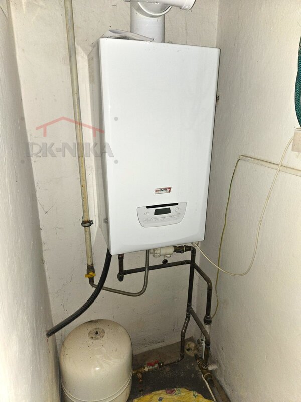 Dům je vytápěn ústředním kotlem na plyn a ohřev vody zajišťuje