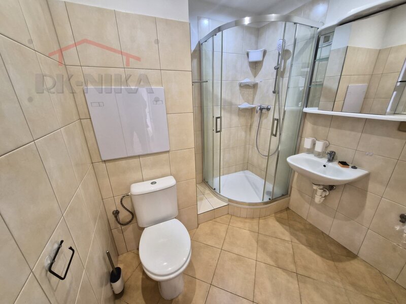 koupelny s WC (sprchový kout, umyvadlo, skříňky) a ložnice se vstupem na